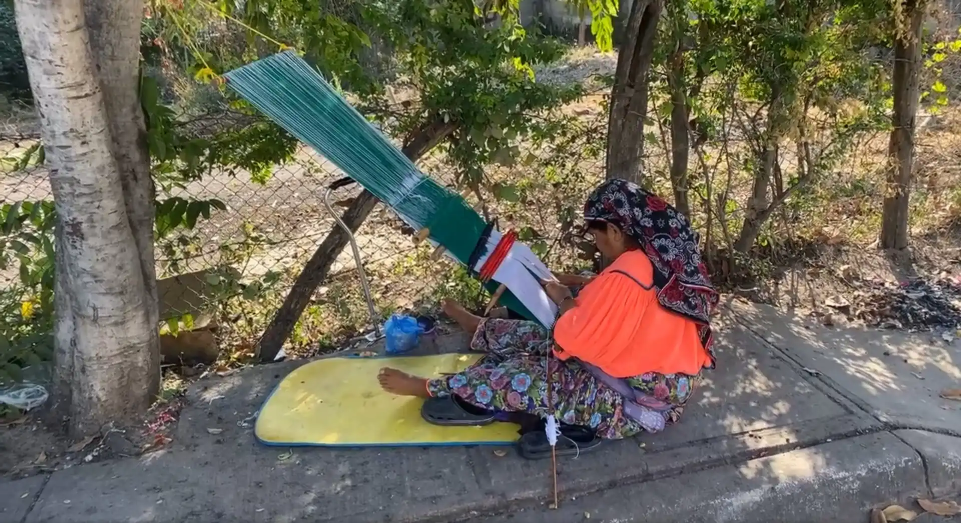 Pese a la precariedad, Alicia agradece el permiso del dueño del terreno donde se encuentra el árbol que le da sombra. Ahí ha tejido durante cuatro años, sin pedir nada más que un espacio donde seguir generando su propio sustento.