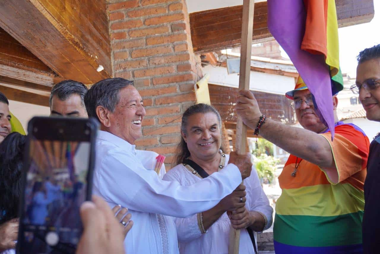 El alcalde vallartense encabezó la colocación de este símbolo de la diversidad en el balcón principal de presidencia, junto a regidores, autoridades y activistas sociales.