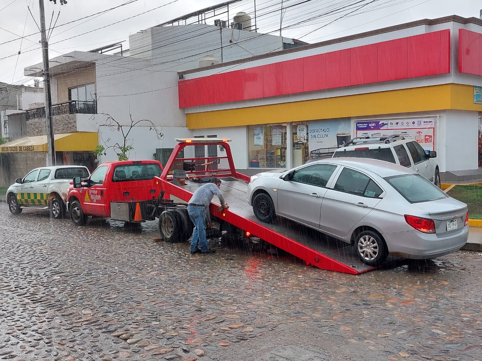La detención del vehículo tipo aveo color plata se verificó en la calle Exiquio Corona en su cruce con la calle Miguel Ángel Robles, en la colonia La Floresta, en esta cabecera municipal.