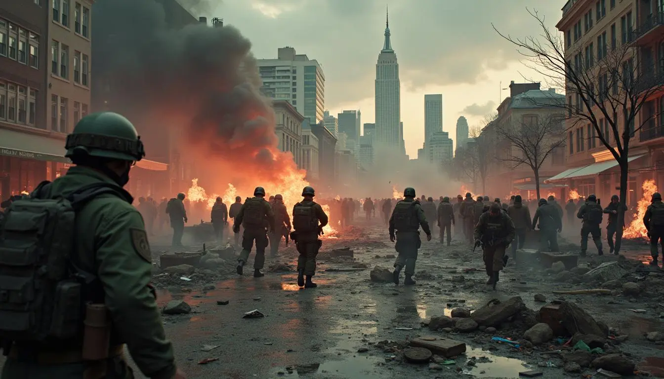 - Estalla la guerra civil en los Estados Unidos: Las divisiones ideológicas, la erosión democrática y el malestar interno se intensifican, sumiendo al país en una guerra civil.