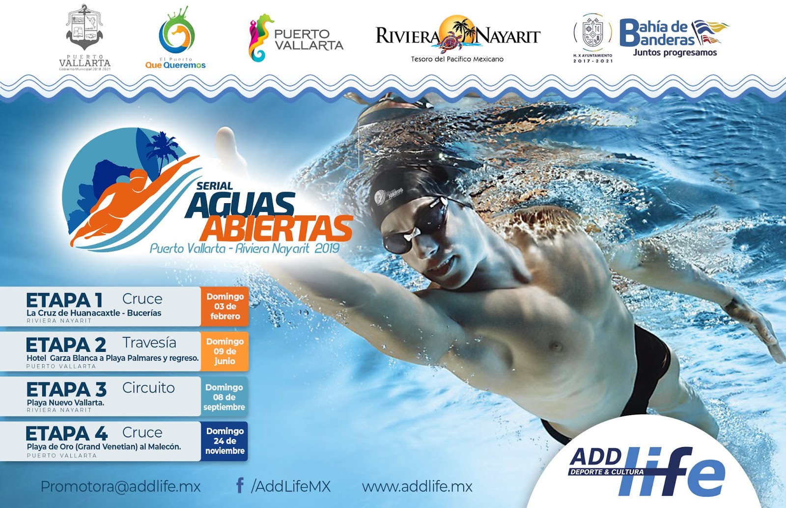 El 1er Serial de Aguas Abiertas Puerto Vallarta-Riviera Nayarit consta de cuatro etapas a realizarse en diferentes fechas en la bahía de Banderas, con convocatoria a nivel nacional. El cruce La Cruz de Huanacaxtle-Bucerías, a realizarse el 3 de febrero, será la primera fecha. Se espera la participación de al menos 250 nadadores, entre triatletas, clubes, escuelas de natación y público en general.