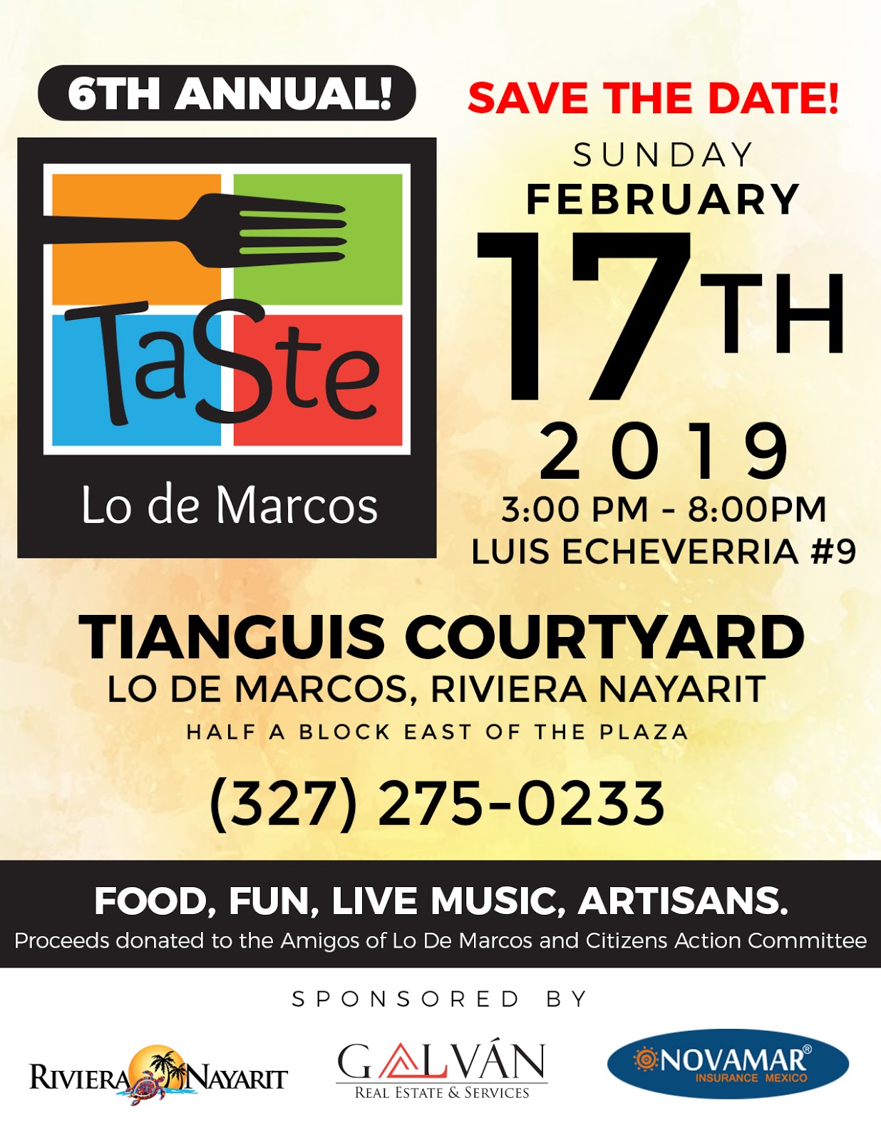 Cada año este evento anual de recaudación de fondos se vuelve más y más popular. El 6° Taste of Lo de Marcos se llevará a cabo el domingo 17 de febrero de 2019, de 3:00 a 8:00 p.m. Los asistentes podrán degustar lo mejor de la gastronomía del pueblo, y además habrá música en vivo y venta de artesanías. Las ganancias serán donadas por igual a las asociaciones civiles Amigos de Lo de Marcos, que brinda servicio y financiamiento para muchos de los proyectos emprendidos en esta ciudad costera, y al Comité de Acción Ciudadana de Lo de Marcos, que es responsable de organizar los eventos culturales y tradicionales del año.