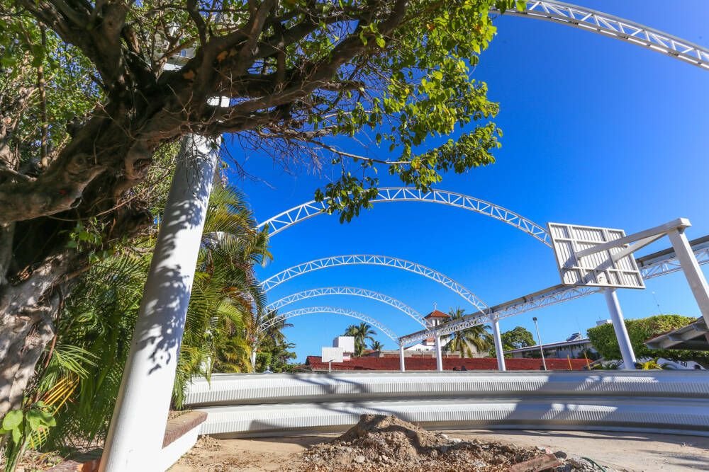Con la construcción de domos o techados de patios cívicos en escuelas de Puerto Vallarta, el gobierno municipal continúa trabajando para generar mejores condiciones educativas, tal y como lo afirmara el alcalde Arturo Dávalos Peña, al realizar este jueves un recorrido de supervisión en dos de los seis proyectos que actualmente se mantienen en desarrollo, y que al regreso presencial a clases, brindarán protección a los jóvenes estudiantes de primaria y secundaria.
