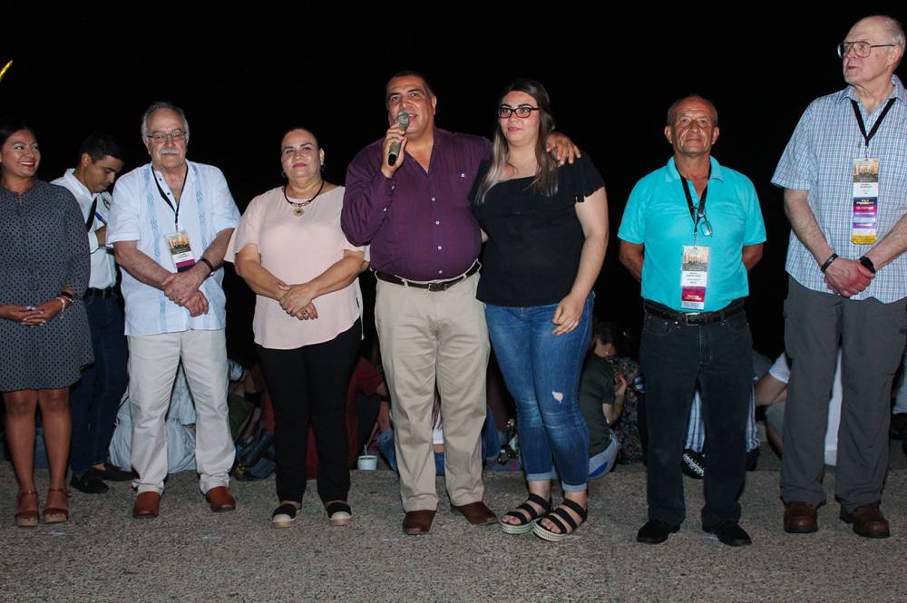 Acompañado por su familia, directivos de este simposio internacional y funcionarios municipales, el primer edil Arturo Dávalos dio la bienvenida a los participantes, deseando que disfruten de su estancia en este puerto, así como de los diferentes espectáculos que a lo largo de la semana se estarán dando en el corazón de Puerto Vallarta.