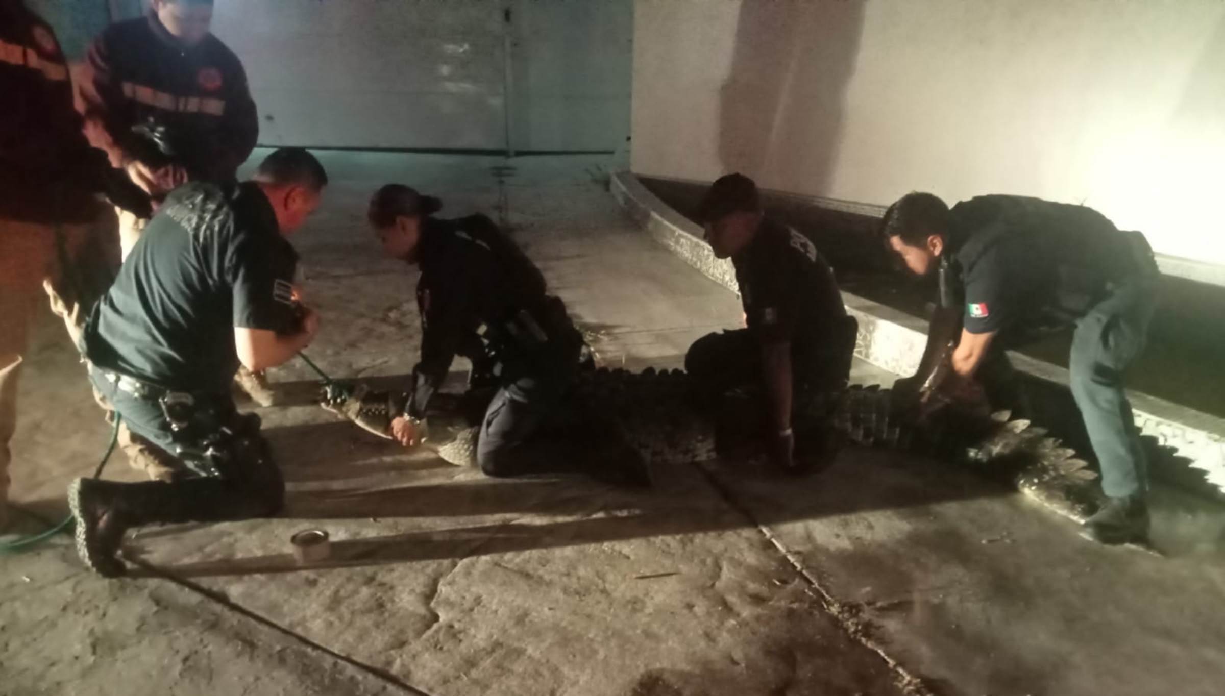 Elementos especializados de la «Patrulla Verde» de la Comisaría de Seguridad Ciudadana protagonizaron una arriesgada misión para capturar un cocodrilo que se paseaba por las calles de Marina Vallarta, resguardando la seguridad de los habitantes.