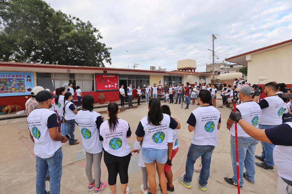 Decenas de voluntarios, realizaron este sábado una jornada de trabajo comunitario beneficiando a una de las escuelas primarias más grandes del municipio en Mezcales, dentro del programa “Voluntario Modelo”.