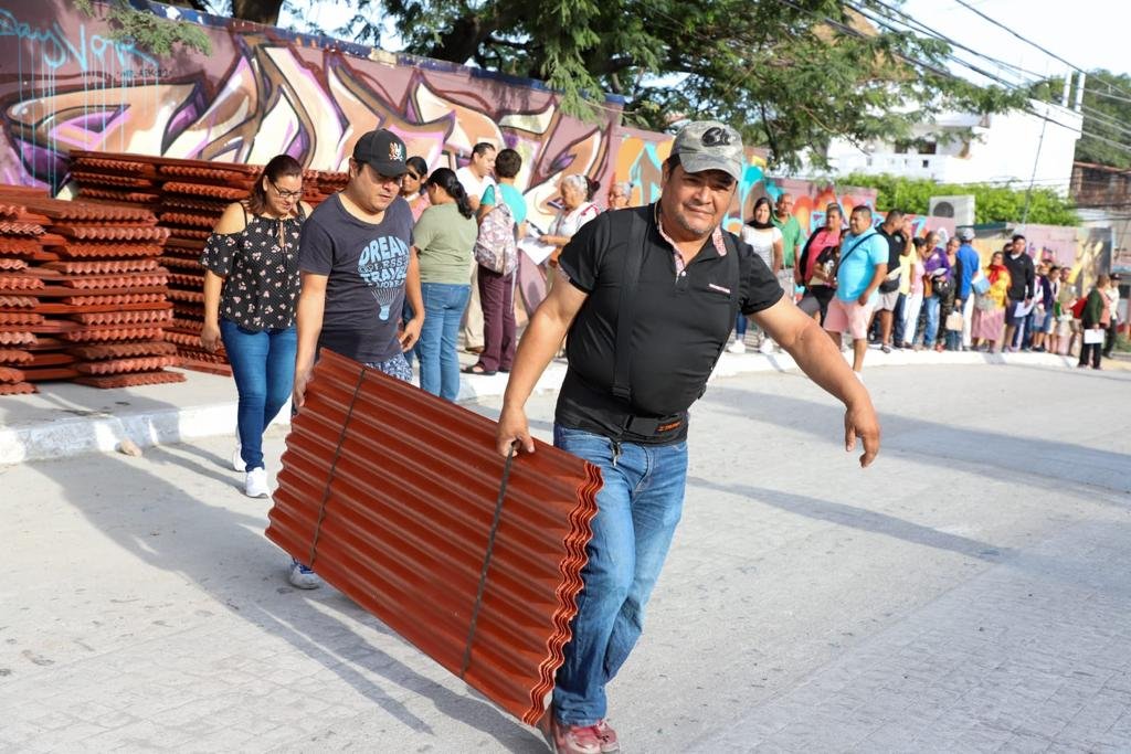 El alcalde Luis Alberto Michel Rodríguez encabezó esta entrega, que atendió a las necesidades específicas de cada hogar. Se distribuyeron materiales como block, lámina, cemento, pintura, juegos de baño, vitropiso y ventiladores de techo. En total, 175 familias recibieron block, 109 hogares obtuvieron cemento, 87 viviendas fueron beneficiadas con láminas, mientras que ventiladores de techo, vitropiso, pintura y juegos de baño se entregaron a 52, 54, 35 y 43 familias, respectivamente.