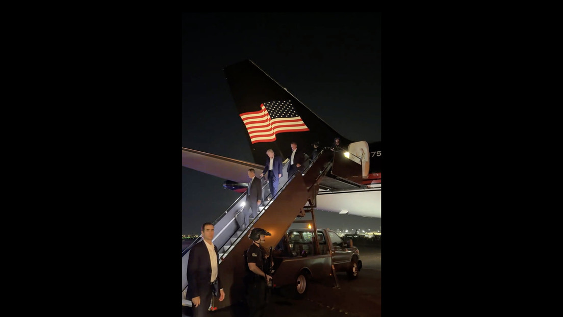 Un vídeo difundido por un asistente muestra a Trump bajando del avión escoltado por agentes del Servicio Secreto de Estados Unidos. Se esperaba que pasara la noche en su exclusivo club de golf en Bedminster, una localidad cercana, de acuerdo a la agencia.
